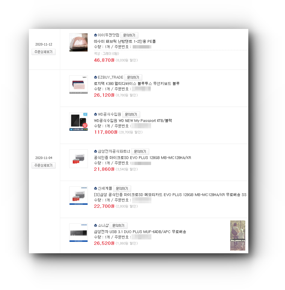 최근 있었던 G마켓, 옥션, G9의 빅스마일데이에서 로지텍의 K380키보드, WD NEW My Passport 4TB, 마이크로SD EVO PLUS 128GB MB-MC 128HA/KR 2개, 삼성전자 USB 3.1 DUO PLUS MUF-64DB/APC 그리고 따수미 패브릭 난방텐트 1~2인용 PE폴를 구매 했다.