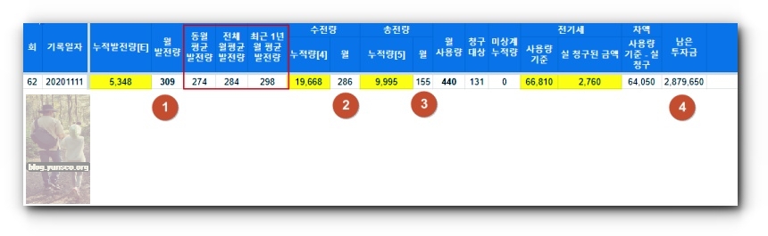전체월평균발전량 284kWh, 최근 1년 월 평균 발전량 298kWh 보다도 많았다.