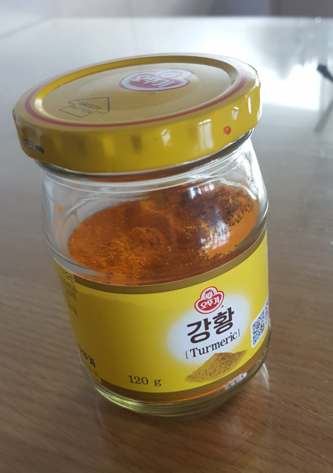 마트에서 구매한 강황을 매일 1티스푼씩 미지근한 물에 풀어서 먹고 있다.